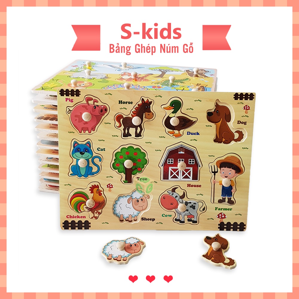 Bảng ghép hình núm gỗ cho bé đồ chơi Simba nhiều chủ đề bảng núm gỗ phát triển trí tuệ