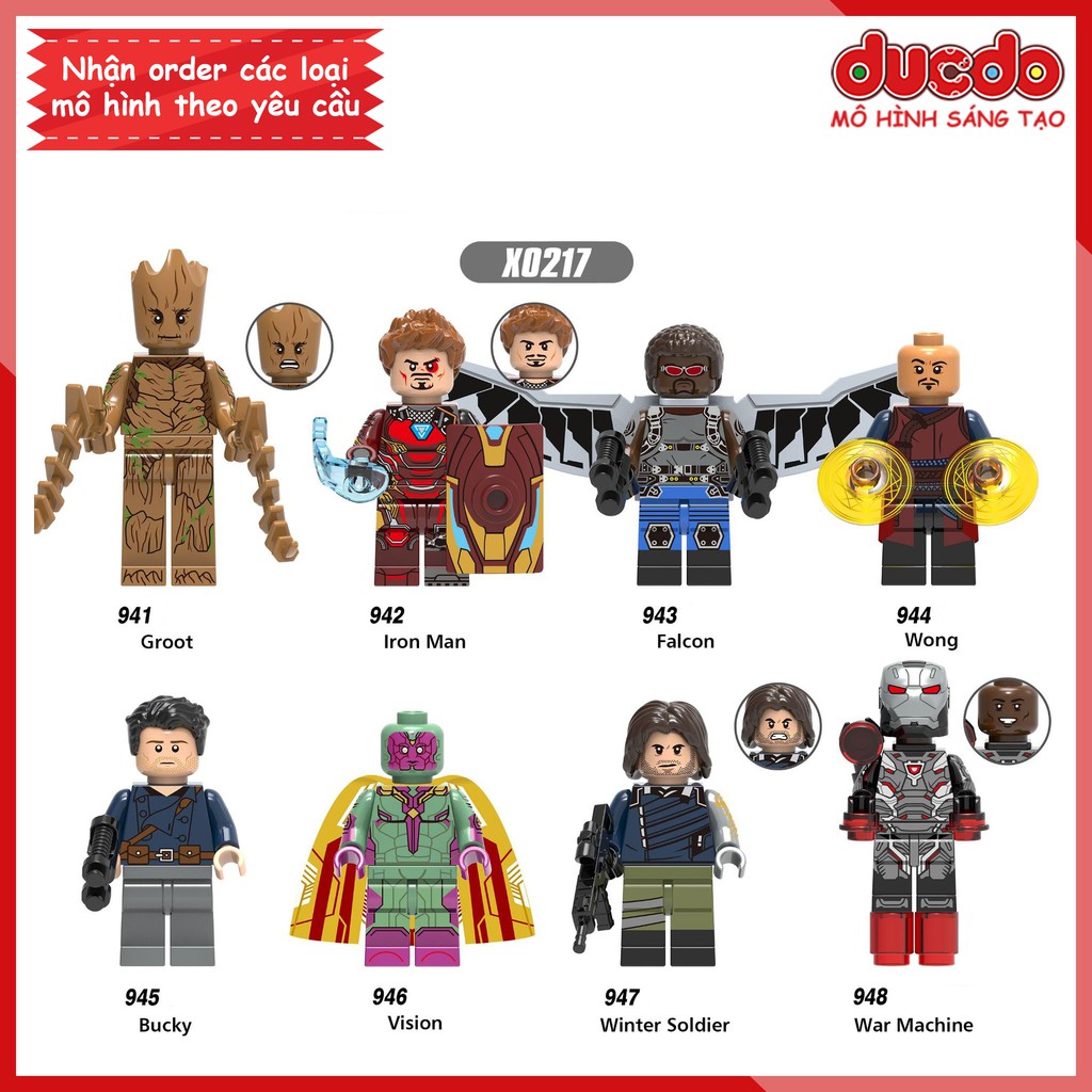 Minifigures Groot, Iron Man, Falcon, Wong, Bucky, Vision, Soldier, War Machine Đồ chơi Lắp ghép Xếp hình Mini XINH 0217 free ship