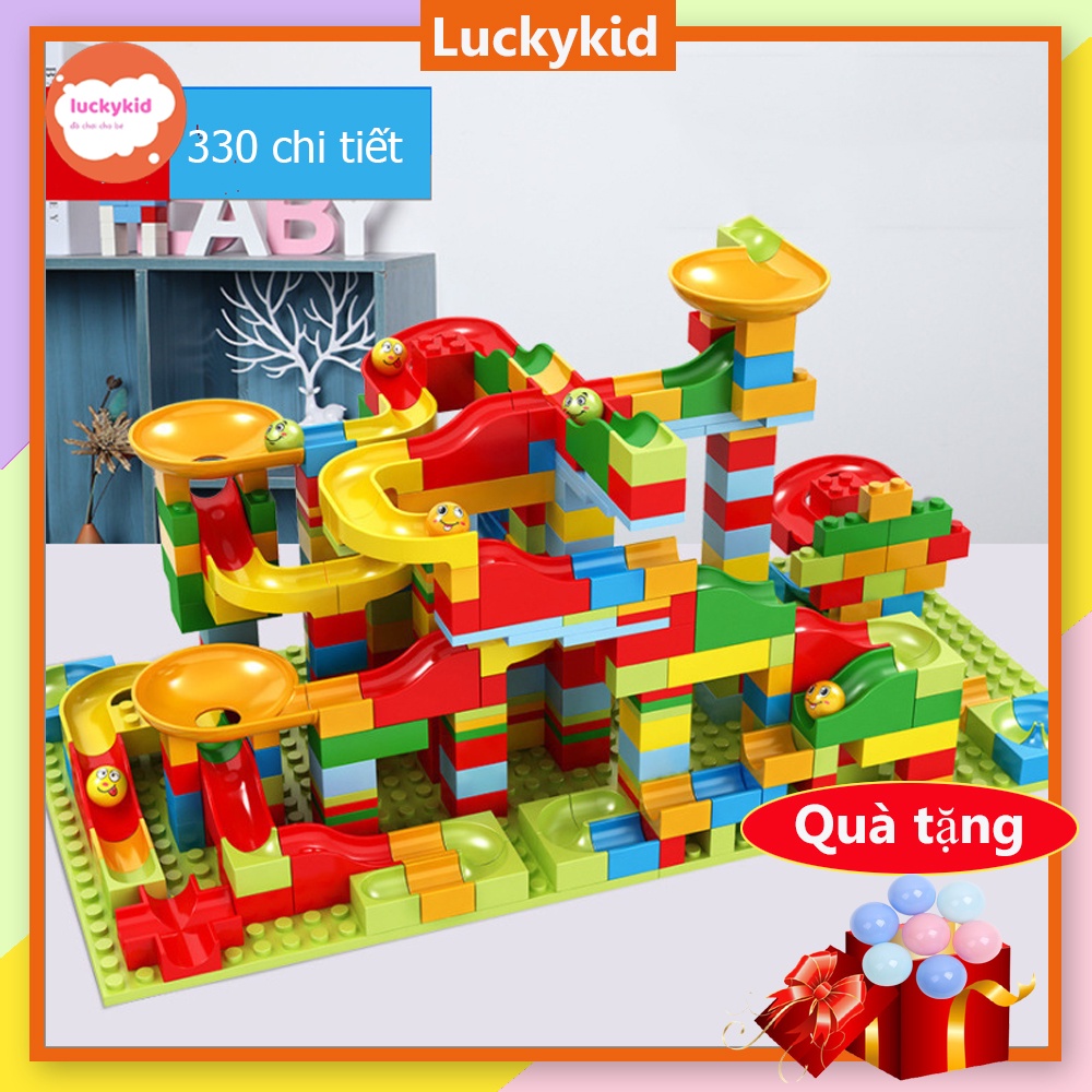 Đồ chơi cho bé lắp ráp xếp hình lego lắp ghép mô hình thả bóng xoay tròn tháp bóng lăn cầu trượt cho bé trai bé gái free ship