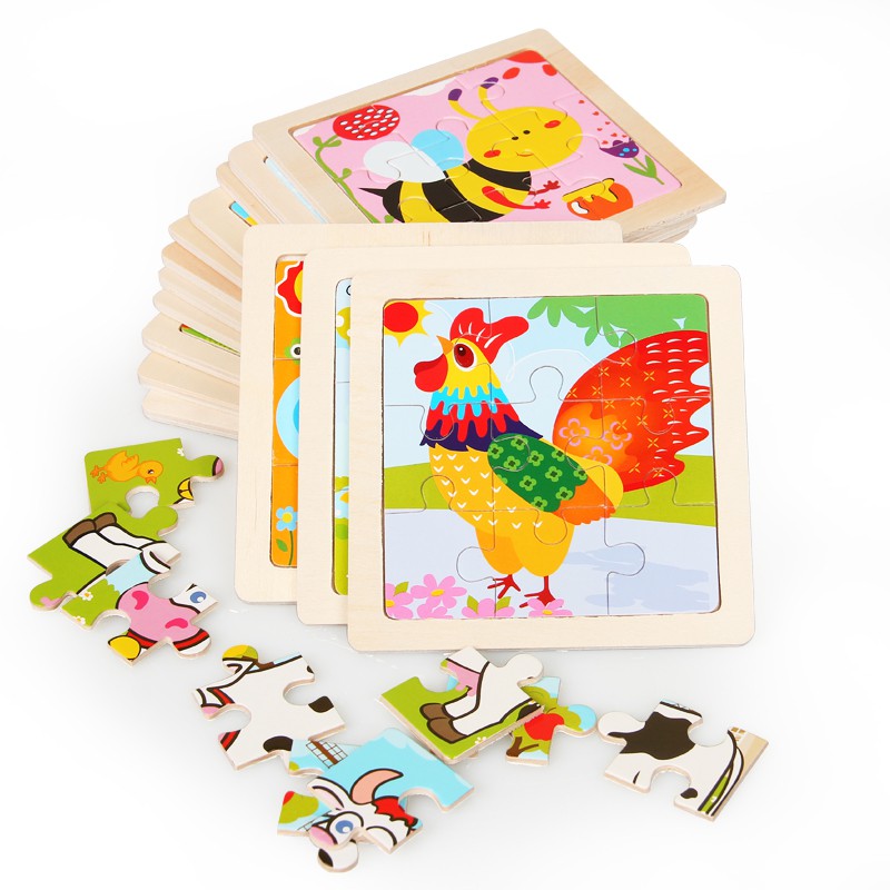 Tranh Ghép Gỗ Thông Minh 16 Mảnh Puzzle 15x15 cm - Ghép 16 Mảnh Bằng Gỗ